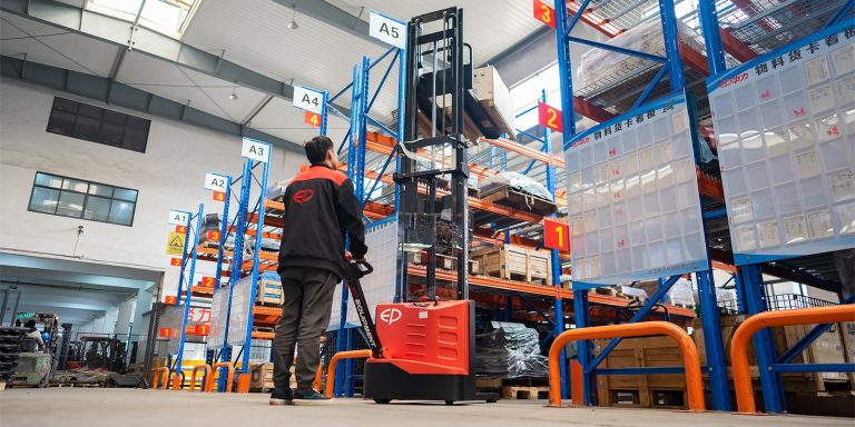 The ES-ES Series stackers from EP Equipment are designed for light duty applications in warehouses and production settings. With lift heights up to 4000mm, these stackers come equipped with a gel battery and integrated charger as standard. Ideal for small warehouses, manufacturing, or retail environments, the ES-ES Series stacker maximizes everyday operating routines with its compact dimensions, making it perfect for restricted spaces.