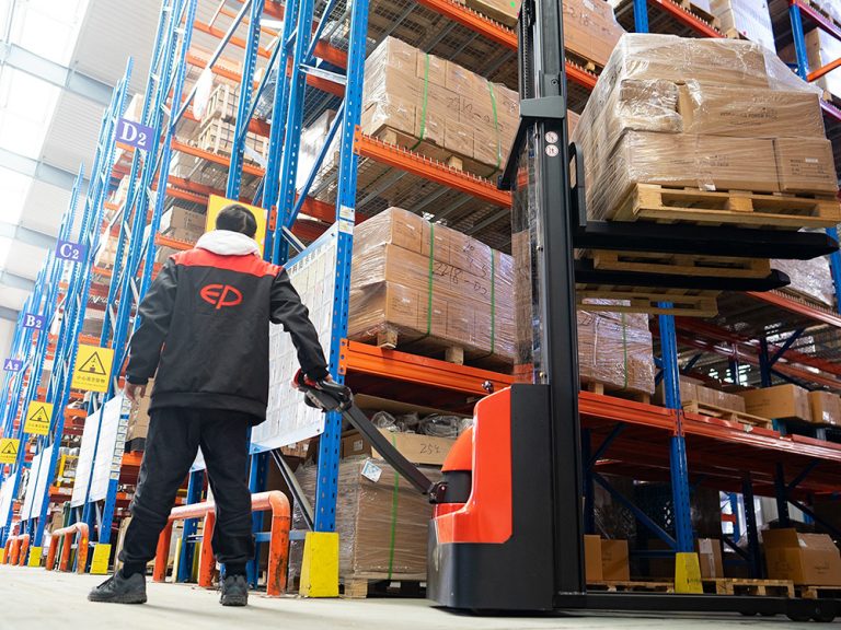 The ES15-15ES electric pallet stacker by EP Equipment is a compact yet powerful solution for medium to heavy-duty material handling tasks. With its AC engine and 125Ah AGM batteries, this stacker offers exceptional performance in a smaller footprint compared to traditional 1.5-ton stackers. Ideal for a variety of applications, it provides lift heights up to 3600mm, making it versatile and efficient for warehouse operations.